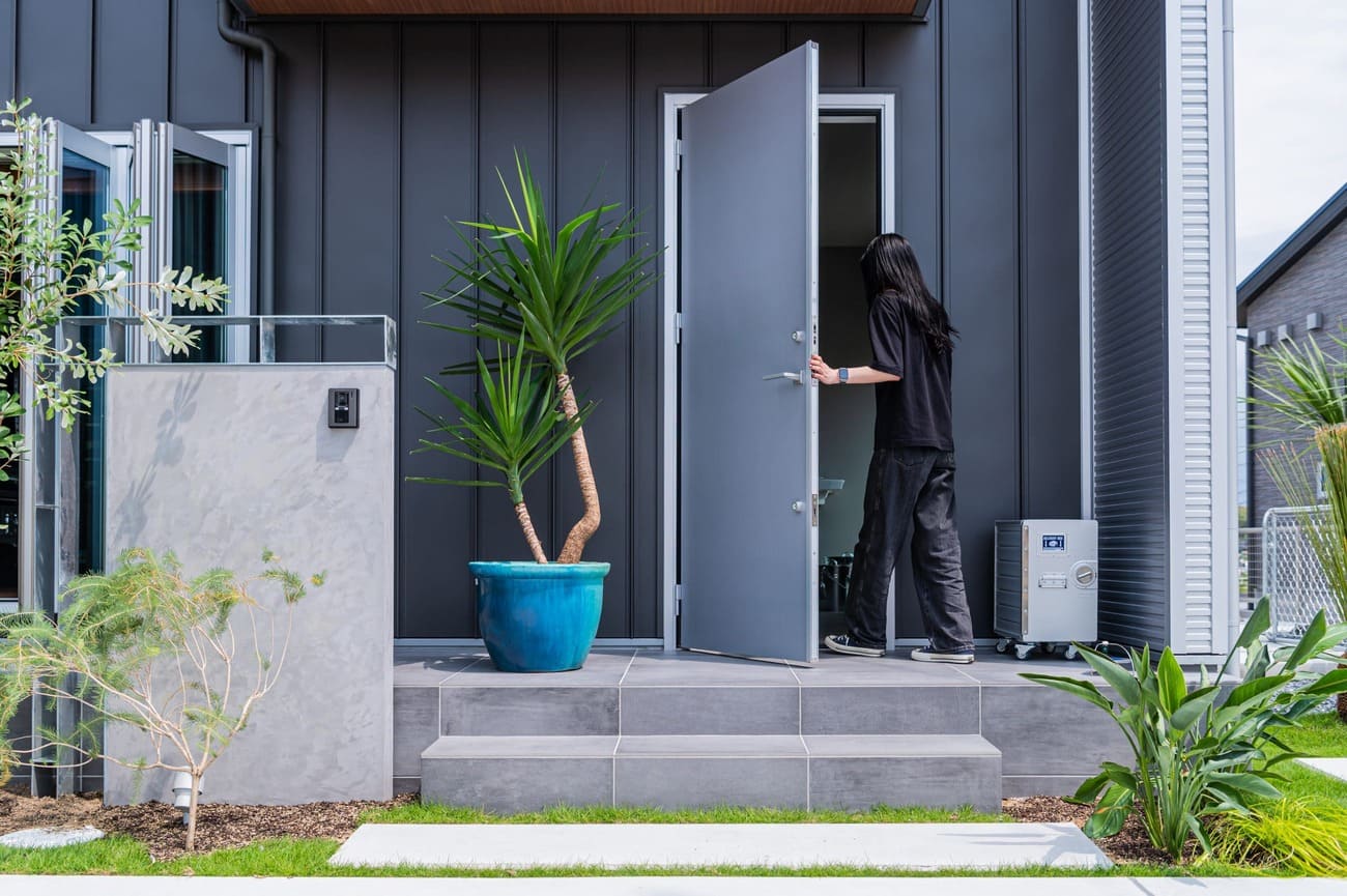 - DETAIL シルバーとブラックのガルバリウム鋼板と木目調のアクセントがバランスよく配置された外観が特徴的。 アイアンの無骨さ・タイルの高級感・木目の暖かさ、様々な要素がミックスされても尚、統一感のある空間はワンランク上の印象に。 広い土間スペース。LDKのプライベートテーブル 。収納力の高いキッチンパントリー。広々としたウォークインクローゼット等、様々な暮らしの楽しみが詰まっています。